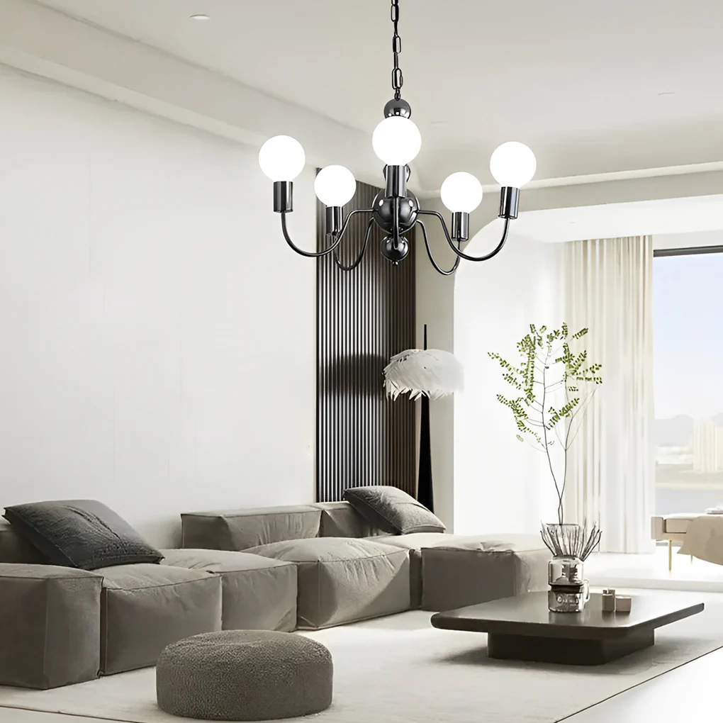 - There are 3 lights, 5 lights, and 8 lights in three different sizes of chandeliers to choose from, which are suitable for spaces of different sizes. And our chandelier also has two colors of black and electroplated chrome color, which can be used to match different home decorations.