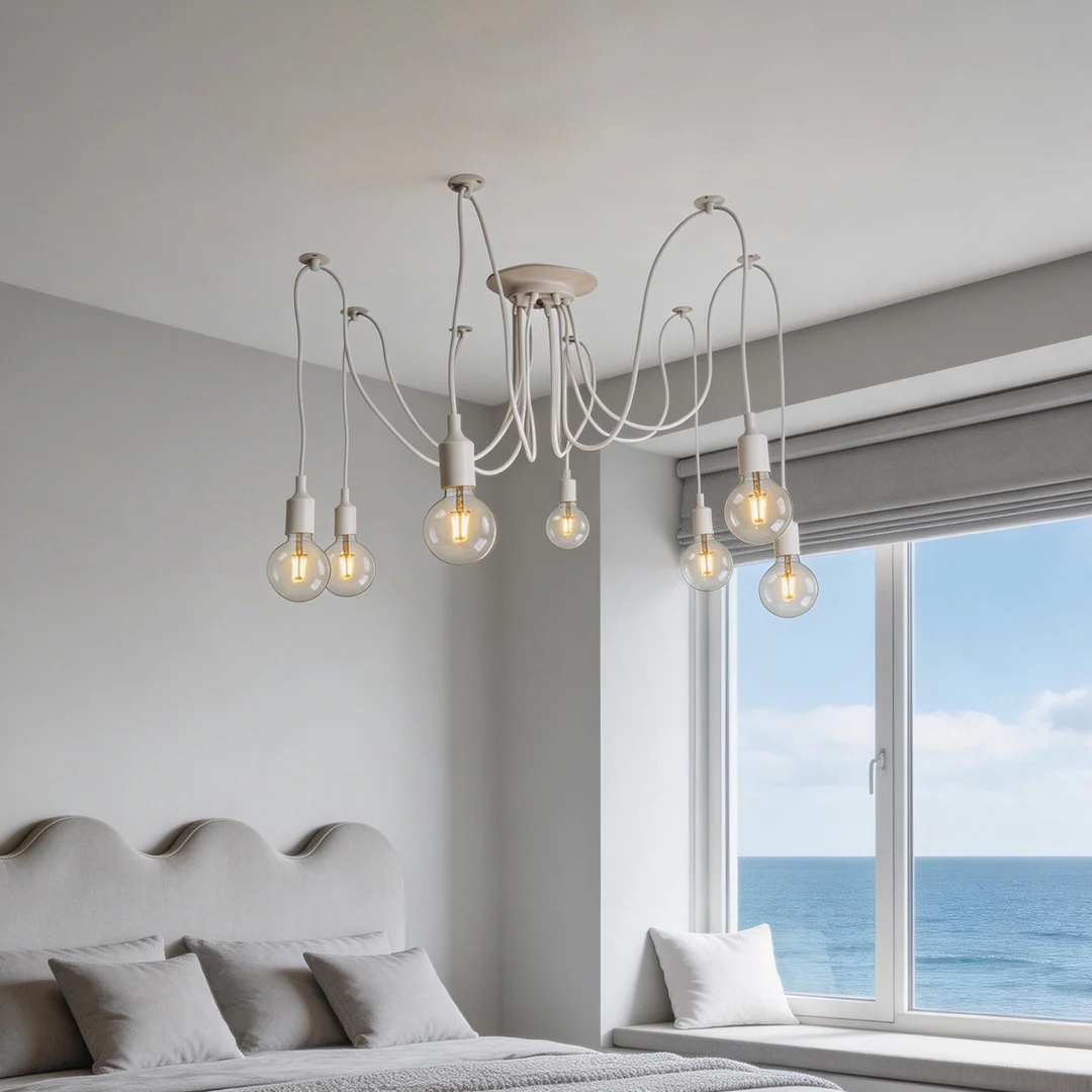 This cluster spider chandelier consists of 10-heads elongated rounded rectangular ceiling mount hardware and a 10-light pendant lighting. You can DIY the number of cables and hanging lights for the intensity of light at something you want to highlight. And it will give you an industrial retro style and modern home style based on the options we provide: black finish, white finish or colorful finish of light fixtures.
