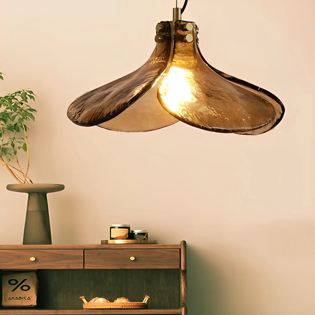 Floral Design: This amber glass pendant light unique four-petal flower design that brings a sense of elegance and vintage charm.