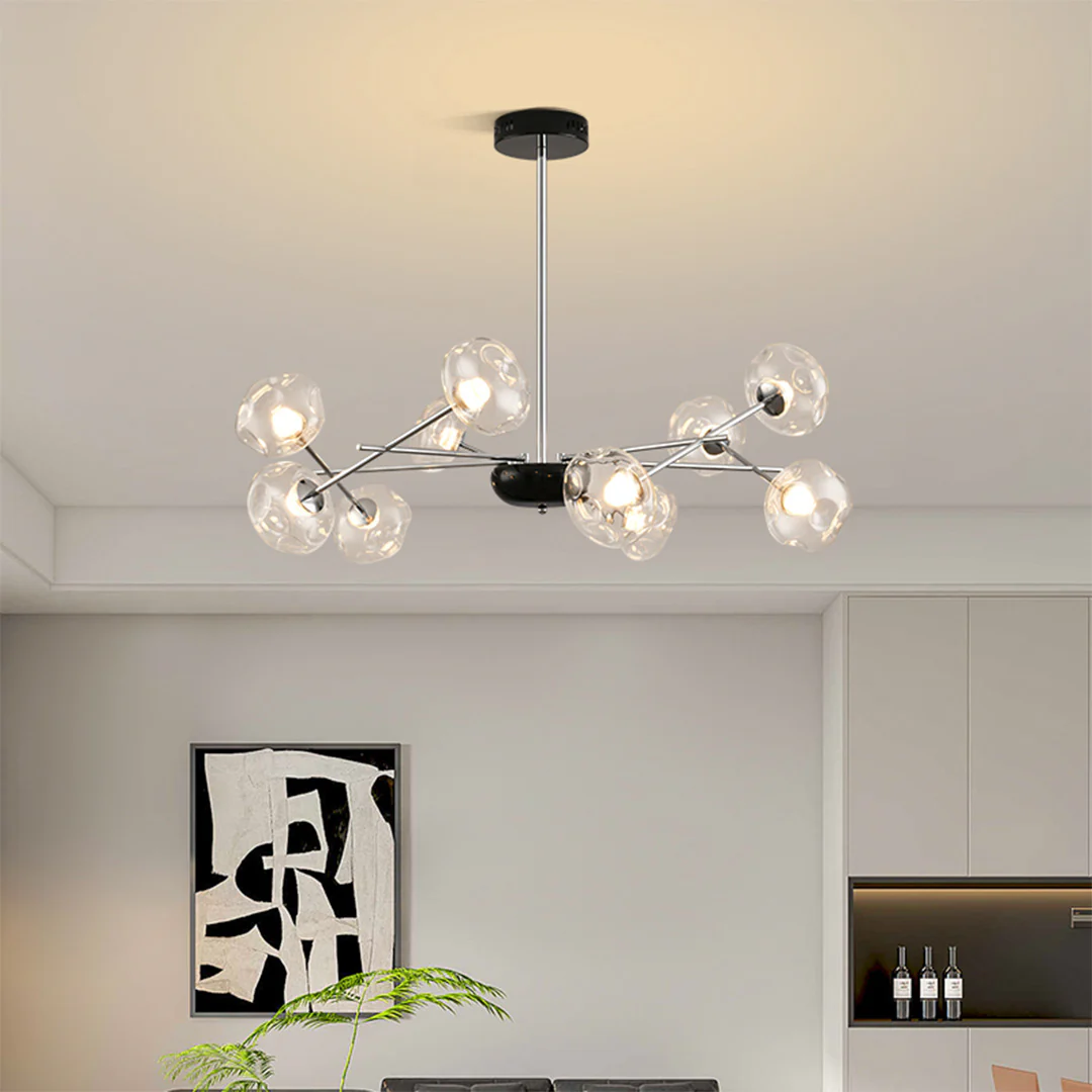 Modern Magic Bean Design: This led chandelier lights features a spherical glass shade combination, showcasing minimalist geometric beauty