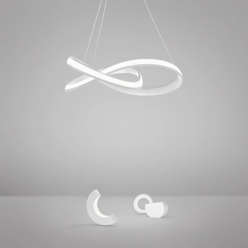 - The unique design of this aluminum ribbon chandelier ceiling light ensures that it will be an eye-catching addition to any home. The light-framed version is subtly nuanced. Alternatively, choose the dark-framed option for an arresting contrast between light and shade.