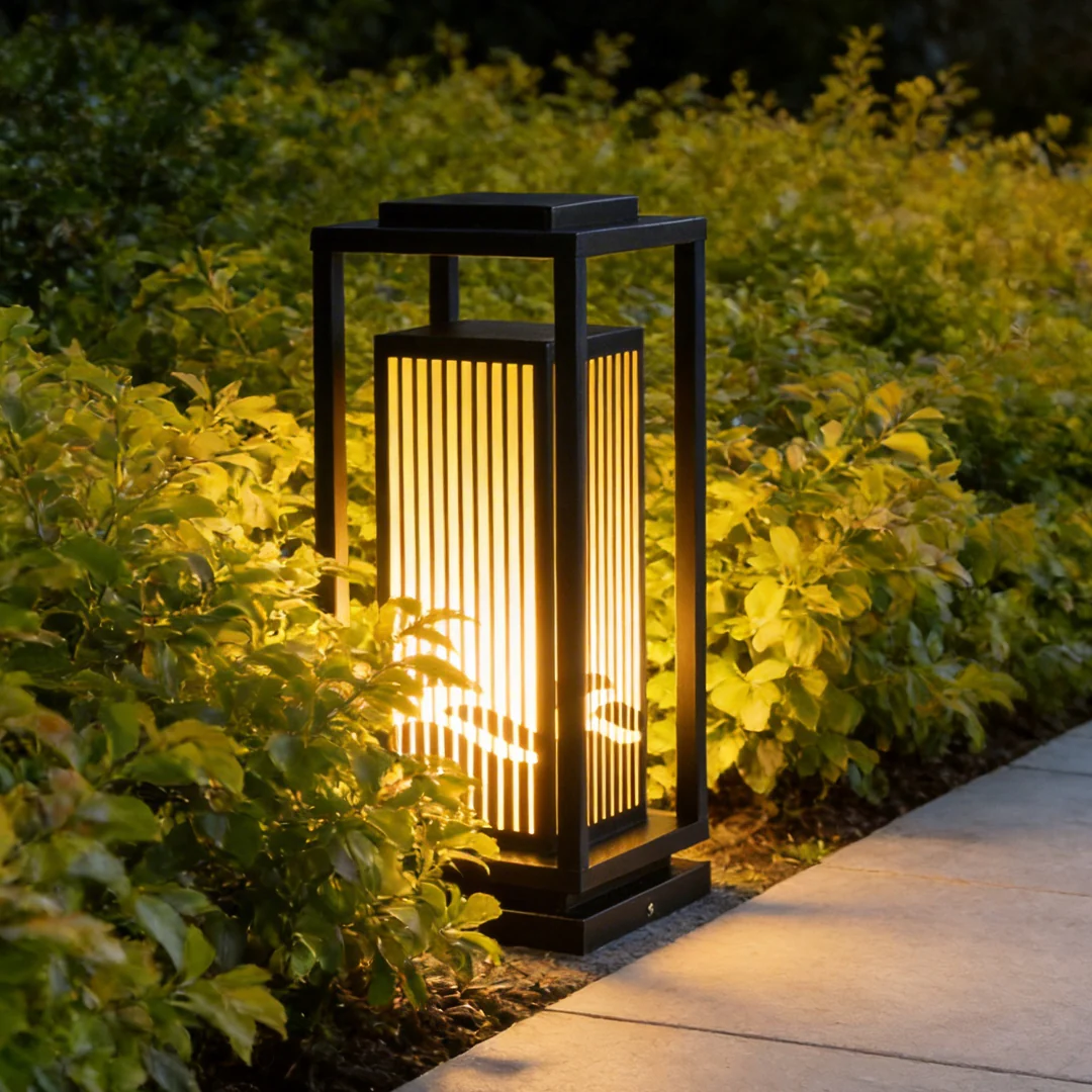 Modern Rectangular Form: This garden bollards lights clean lines with subtle striped detailing create a refined outdoor presence.