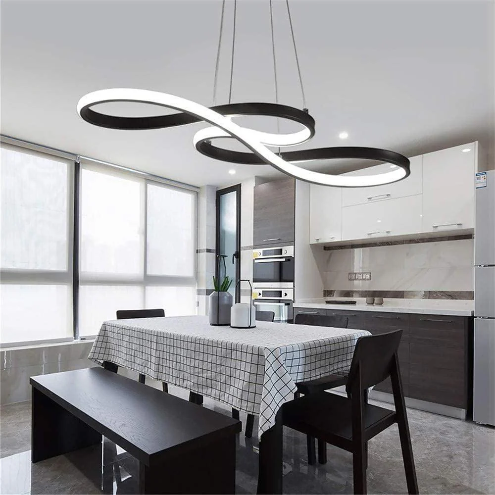 - The design concept of ribbon led chandelier comes from the modern and elegant style of Europe and America. The circular wave shaped lamp body has a novel and unique design. This bright and beautiful ceiling lamp will always illuminate your home.