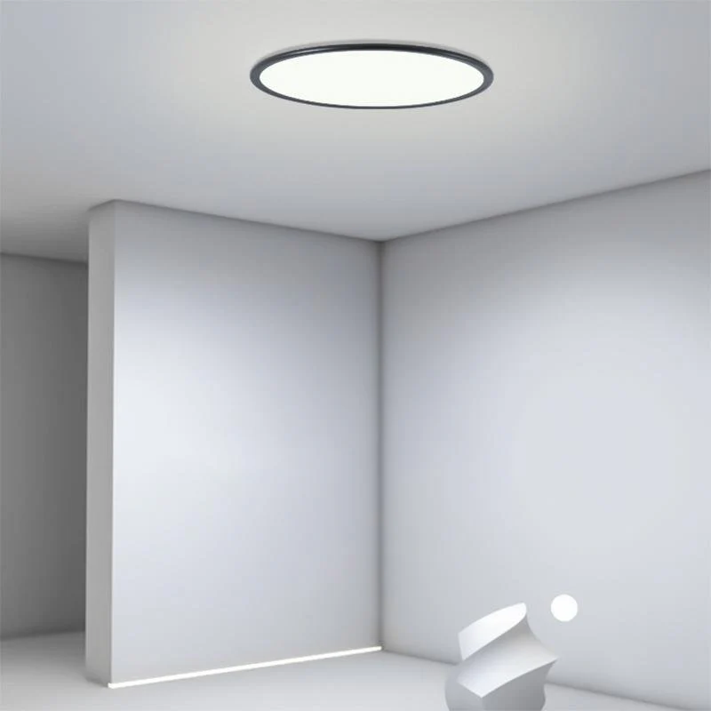 - Available with a slim white or dark frame, this round ceiling light will add a subtle, understated ambiance to your living space.