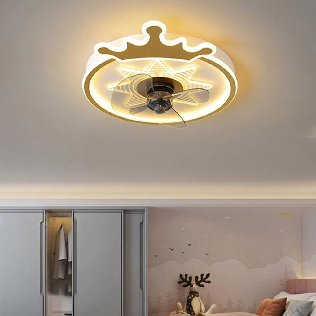 LED Round Crown Shaped Flush Mount Kids Ceiling Fans with Remote Control—