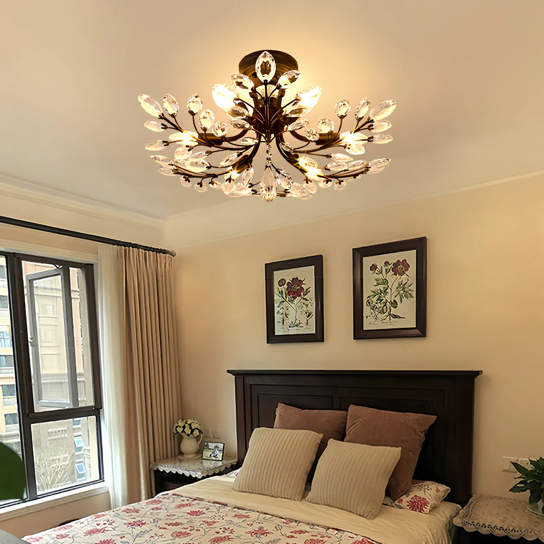 Crystal Semi Flush Ceiling Lights American Leaf Chandeliers