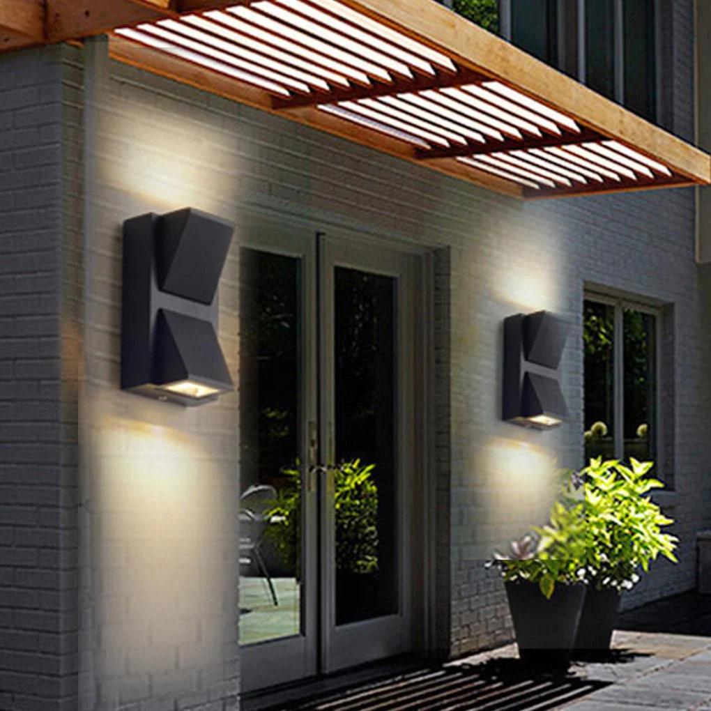 This waterproof outdoor porch lights adds a touch of modern style and personality to any exterior space. With its geometric K design and black die-cast aluminum body, this light fixture combines aesthetic appeal with functionality. The dual-spot lighting feature projects beautiful LED light both upwards and downwards, accentuating architectural details while creating a warm and inviting atmosphere. The transparent acrylic lampshade and energy-efficient LED light source provide long-lasting, bright illumination. Available in one-head and two-head options, this light can be tailored to fit different space and lighting needs. With an IP65 waterproof rating, it is built to withstand harsh weather, making it perfect for use on porches, patios, and entrances.